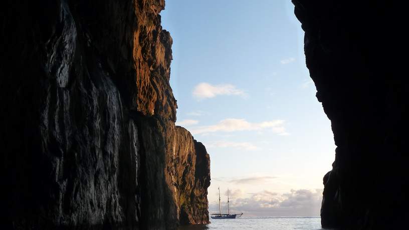 De dagen daaropvolgend viel ik van de ene verbazing in de andere. Zo zeilde ik vanuit het plaatsje Kirkjubør (zeg: tjitjebeur) met zijn kerkje en boerderij uit het jaar 1000 eerst met de prachtige schoener, de Nordlysid en vervolgens per zodiac in een grot, waar een geweldig blaasconcert werd gegeven. De indrukwekkende akoestiek van de grot en het klotsen van het water zorgden voor een mysterieuze sfeer. Tijdens de zeiltocht zag ik verschillende vogels, waaronder een aantal dobberende papegaaiduikertjes met hun bontgekleurde snavels. Met een lekkere warme vissoep op schoot genoot ik van de prachtige zonsondergang.