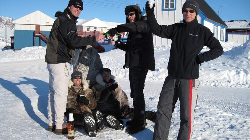 Over extremen gesproken: waar wordt een eenvoudige reiziger nog ontvangen door de burgemeester? In Qeqertarsuaq. Het dorp met krap 900 inwoners en minstens zoveel sledehonden, ligt op Disko eiland en staat ook wel bekend onder haar wat makkelijker uitspreekbare naam Godhavn. Samen met onze gids staat ze op de helihaven ons op te wachten. Als Inuït vertegenwoordiger onderhandelde ze met de Deense overheid over meer autonomie. Ze werd Groenlandelijk bekend, maar belangrijker nog is dat haar familie het merendeel van de lokale dorpelingen van werk voorziet. In de visfabriek bijvoorbeeld. Ze is, zo kun je stellen, de Godmother van Godhavn.