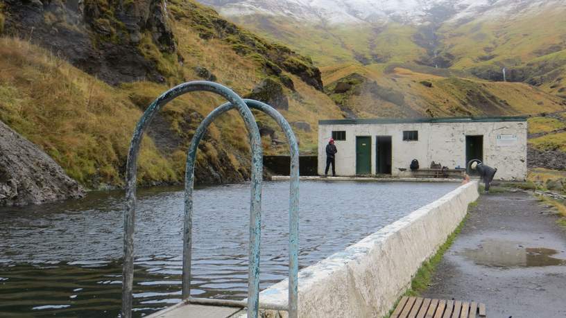 Het ligt voor de hand na het bovenstaande, maar er bevindt zich nogal wat warm water in de IJslandse bodem. Je hoeft bij wijze van spreken maar een flink gat te boren en het hete water spuit eruit. Veel huizen, ook in Reykjavík, worden verwarmd met dit geothermische water. In IJsland is men niet zo bewust bezig als het gaat om stoken en de ramen open laten staan, of een dagje weg zonder de verwarming uit te zetten. Een ander bijkomend voordeel van die energiebron waar de IJslanders bovenop zitten, is dat je onwaarschijnlijk veel zwembaden hebt in IJsland. Ze zijn altijd heerlijk warm, minimaal 25ºC en vaak zijn er ook zogenaamde hotpots (een soort jacuzzi’s). Een bijzonder bad aan de zuidkust, waar ik pas twee jaar geleden voor het eerst kwam, is Seljavallalaug. Een 25 meter bad gebouwd in 1923, half tegen de rotsen aan, in een onwaarschijnlijk mooie setting. Het is nu tamelijk vervallen, maar een bezoek en duik toch zeker waard. De simpele kleedhokken worden door vrijwilligers (heel af en toe) schoon gemaakt, maar je moet het een keer meemaken. Om er te komen, sla je ongeveer 10 km ten westen van Skógar weg 242 in. Een bijzonder weetje is dat Seljavallalaug in 2010 na de beroemde uitbarsting van de Eyjafjallajökull helemaal bedolven was met as en stof. Vrijwilligers hebben het as weg geschept en nu stroomt het bruine natuurlijk warme water er weer als vanouds. Meer weten over de IJslanders en hun passie voor warme baden? Kijk dan dit filmje op Facebook!