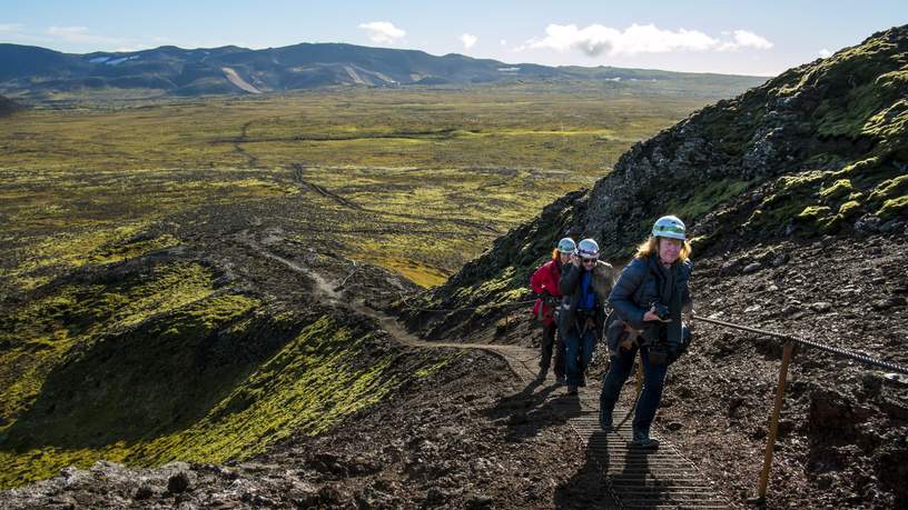 Als je op zoek bent naar de mooiste plekken, kom je weleens op rare plaatsen uit. Zeker in IJsland hebben ze er een handje van. Daar bouwden ze een lift boven de smalle krater van de Thrinukagigur vulkaan (die ik vanaf nu alleen nog als de vulkaan zal aanduiden om de leesbaarheid van dit stukje te verhogen). Die gaat 120 meter de diepte in. Naar eigen zeggen de enige plek ter wereld waar je de magma kamer van een vulkaan kan bezoeken. Half uurtje rijden vanuit Reykjavik, dan nog een stukje lopen. Gelukkig is de vulkaan al vierduizend jaar niet meer actief. Ik hoef mijn reisverzekering niet aan te passen.