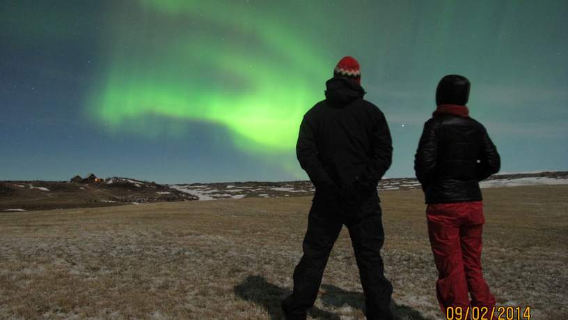 We verbleven twee nachten in kleine cottages in het zuiden van IJsland aan de Rangá rivier. Een goede plek om het Noorderlicht te kunnen zien met weinig lichtvervuiling. De voorspellingen voor die avond waren niet zo goed, maar we besloten toch een wekschema te maken. Alle deelnemers van de groep zouden s ‘nachts een keer de wekker zetten om te kijken of het Noorderlicht toch te zien zou zijn en dan de rest van de groep wekken en… we hadden geluk!