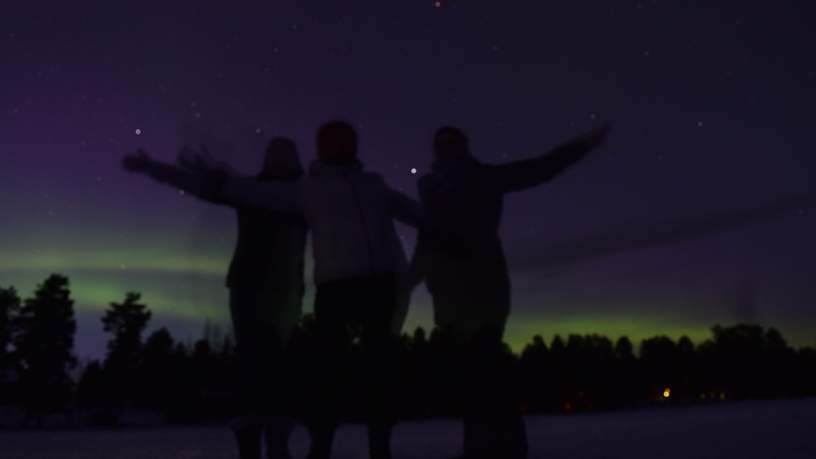 Volle glazen wijn blijven onaangeroerd op tafel staan. De toetjes kunnen terug de ijskast in. Dit zou wel eens de kans van je leven kunnen zijn om het magische noorderlicht te kunnen zien dus als de donder naar buiten. Je weet tenslotte nooit hoe lang (of kort) het duurt.