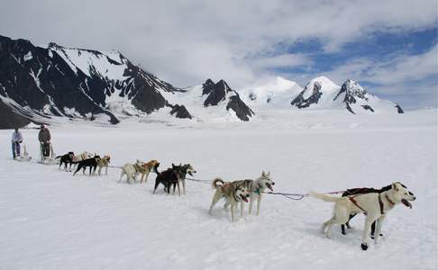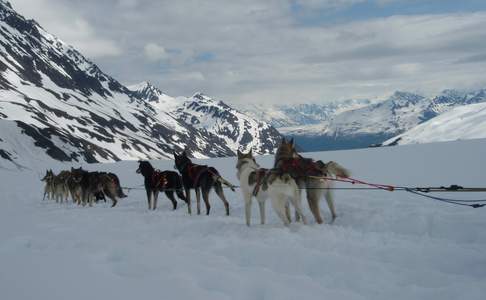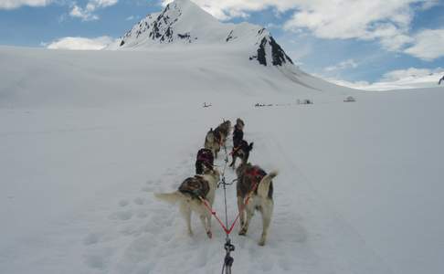 Tijdens deze bijzondere excursie ga je per helikopter naar de Knik Glacier, waar in de zomer midden op de gletsjer een huskyteam verblijft. Vanaf de Alaska Glacier Lodge maak je een unieke tocht per hondenslede met de husky's en hun musher. Eerst maak je kennis met je hondensledeteam, de puppies en de verhalen daaromheen. Na een korte uitleg over de sledehonden stuif je weg over het ijs. De honden zijn niet meer te houden en willen maar één ding: vaart maken! Eenmaal onderweg overheerst de stilte, die alleen wordt onderbroken door het geluid van de viervoeters die de slee voorttrekken.