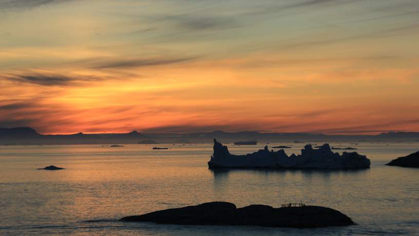 In de avond ga je aan boord van een boot, voor een tocht die één van de hoogtepunten van je reis naar Groenland zal zijn. Tijdens de midzomernachtzon zie je de geweldige lichtval op de ijsbergen en rond middernacht kleuren ze roze en oranje. Je maakt een cruise door het fjord en je kunt de immense ijsbergen, soms wel 100 meter hoog, van dichtbij bewonderen.