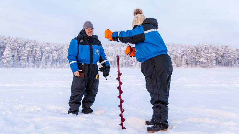 In de middag staat er nog een bijzondere activiteit op het programma. Je gaat met ijsvissers op pad om het echte en traditionele ijsvissen met netten onder het ijs uit te proberen. De gids zal achtergrondinformatie geven over deze traditionele manier van ijsvissen. Deze manier van vissen levert vaak een vangst op van grotere vissen en als het je lukt om een grote vis te vangen, mag je deze meenemen naar de lodge en zal deze voor je schoongemaakt worden en 's avonds bij het diner geserveerd worden.