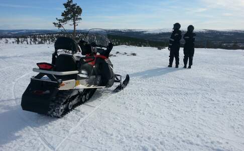 In de middag gaan we de omgeving verkennen per sneeuwscooter. De gids geeft uitleg over het gebruik van de sneeuwscooter en we leren hoe we veilig met een sneeuwscooter door verschillende soorten landschap kunnen rijden. Het Inarimeer is het grootste meer in Fins Lapland, met een oppervlakte van ongeveer 1000 km2 en er liggen ruim 3300 eilanden in. In de winter is het meer bevroren en is het ijs wel een meter dik. De lunch wordt onderweg in de wildernis genuttigd bij een kampvuur. De rit is met twee personen per scooter. Onderweg kan van bestuurder gewisseld worden.
