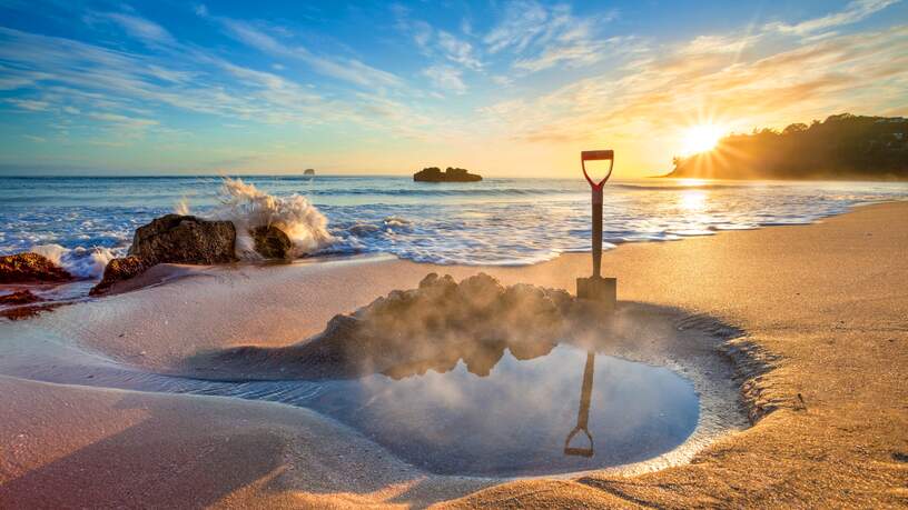 Witte kliffen, gouden stranden, uitnodigend turquoise water en groene bossen zijn de kleuren van de Coromandel. Het is één van onze favoriete regio's in Nieuw-Zeeland! Terecht beroemd is Hot Water Beach, waar warme bronnen door het zand omhoog borrelen. Als het vloed is, kun je je eigen 'spa'-bad uitgraven voor een duik in het warme water. We maken ook een wandeling langs het prachtige zandstrand van Hahei en genieten van het adembenemende kustlandschap. Ook bezoeken Cooks Beach (vernoemd naar kapitein James Cook die in 1769 met de HMS Endeavour de Mercury Bay binnenvoer), beroemd om zijn lange gouden zandstrand dat nu in de zomermaanden een populair toevluchtsoord voor Kiwi's is.