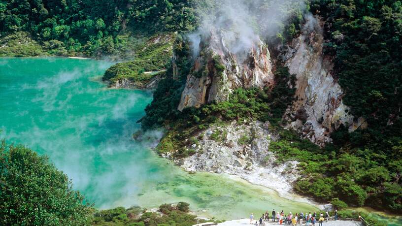 We nemen vandaag de Pacific Coast Highway door de badplaatsen Whangamatã en Tauaranga in de prachtige Bay of Plenty, voordat we het binnenland ingaan voor een bezoek aan een goed gevormde bushwalk met schilderachtige uitkijkpunten over de Okere Falls. Rotorua is niet alleen het epicentrum van de geothermische activiteit in Nieuw-Zeeland, maar ook van het Mãori-erfgoed. Geen bezoek aan Rotorua zou compleet zijn zonder Te Puia: niet alleen een actieve geothermische plek, maar ook het nationale centrum voor inheemse kunst en ambachten en een Kiwi-beschermingsproject. Bij Te Puia maakt het deel uit van hun cultuur om je te verwelkomen, rond te leiden, te vermaken en te behandelen alsof je deel uitmaakt van de familie.