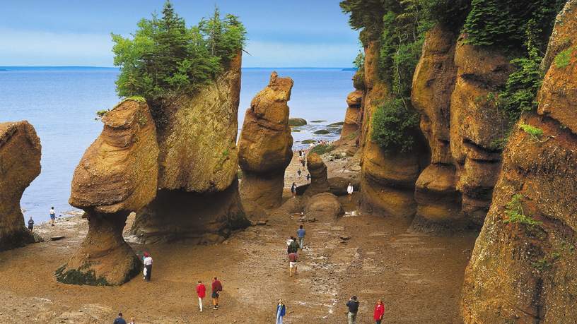 De Hopewell Rocks zijn één van New Brunswick’s top attracties. Je kunt het park makkelijk zelf bezoeken, het bestaat uit ca. 15 meter hoge rotspilaren, de zgn. Flowerpot Rocks, die bij eb volledig droogvallen en bij vloed grotendeels onder water verdwijnen. Je kunt hier wandelen op de bodem van de oceaan, daarnaast zijn er nog meerdere goed aangegeven wandelpaden.